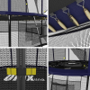 Защитный мат для пружин, расположенный по периметру батута, состоит из четырех слоев, обшитых ПВХ материалом, плотностью 150 г/см3 и надежно закрывает пружины.
