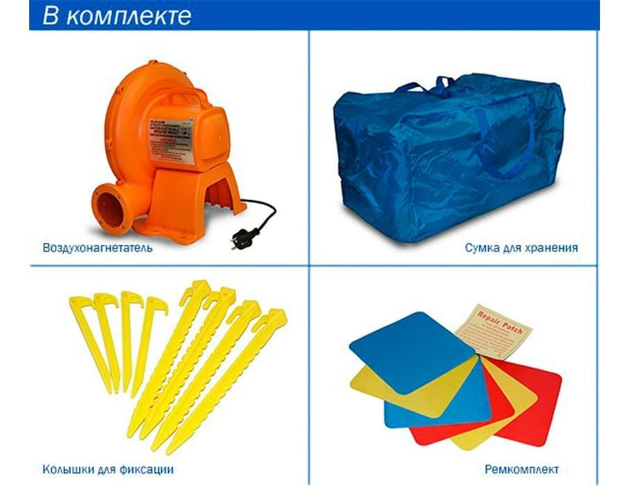 При возникновении в насосе короткого замыкания или при прочих возникших проблемах при его эксплуатации, он немедленно выключается, тем самым обеспечивает безопасность пользователю надувного батута. Насос отвечает экологическим стандартам ЕС, а также имеет сертификат безопасности GS.