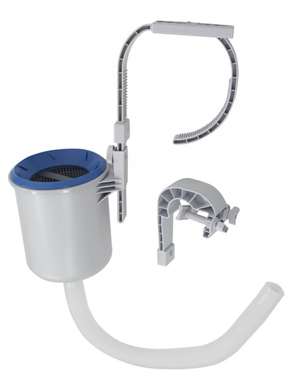 Навесной скиммер легко крепится регулируемым кронштейном на бортике надувных бассейнов серии Easy Set и каркасных бассейнов Metal Frame, Prism Frame Pool.