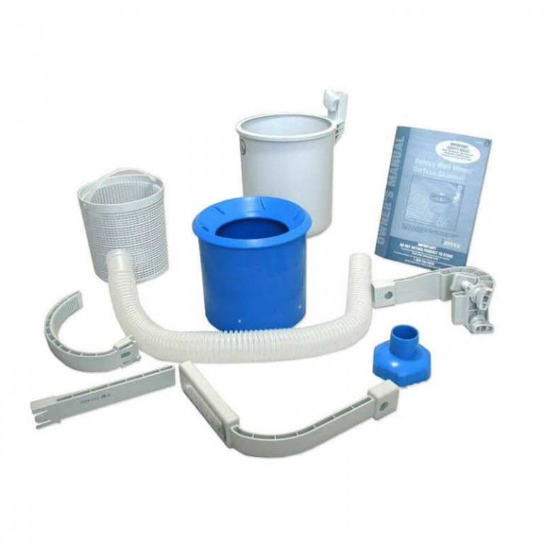 Скиммер для бассейна Intex 28000 для первичной фильтрации воды, поступающей в фильтрующий насос. Он представляет собой воронку с сеткой, которая задерживает механические примеси, благодаря чему фильтрующий насос забирает очищенную от крупного мусора воду.